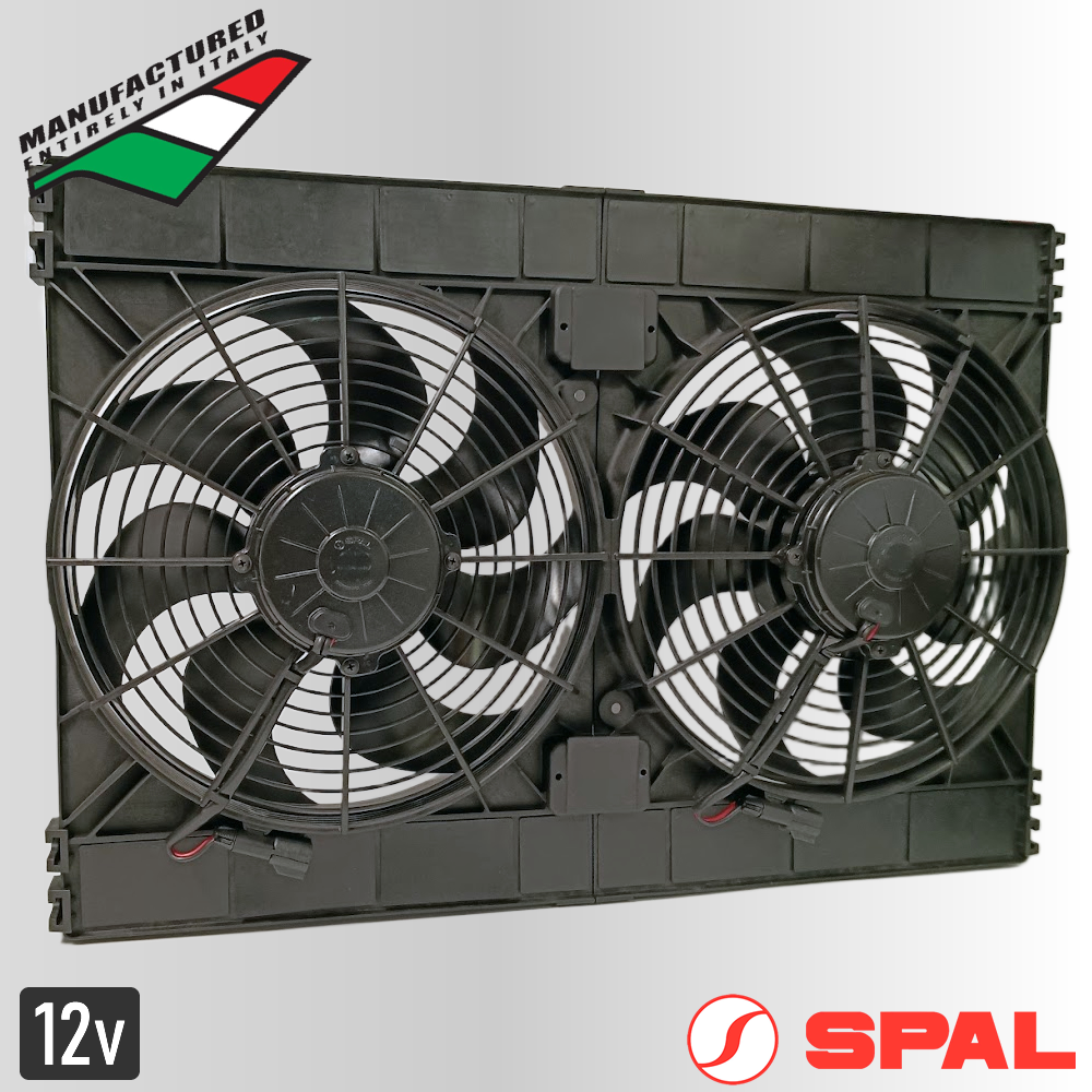 Each SPAL EF3566 12" Dual Motor Fan is individually balanced for long life and features fully sealed (IP68) water and dust proof high-output motors of superior quality. The SPAL 12" dual puller unit comes with a 12-month manufacturers warranty from date of purchase.
